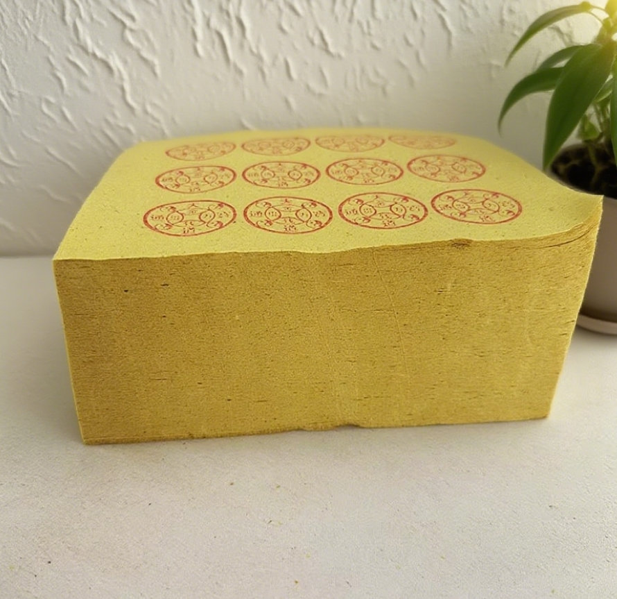 A symbolic bundle of handcrafted paper coins representing abundance and respect.